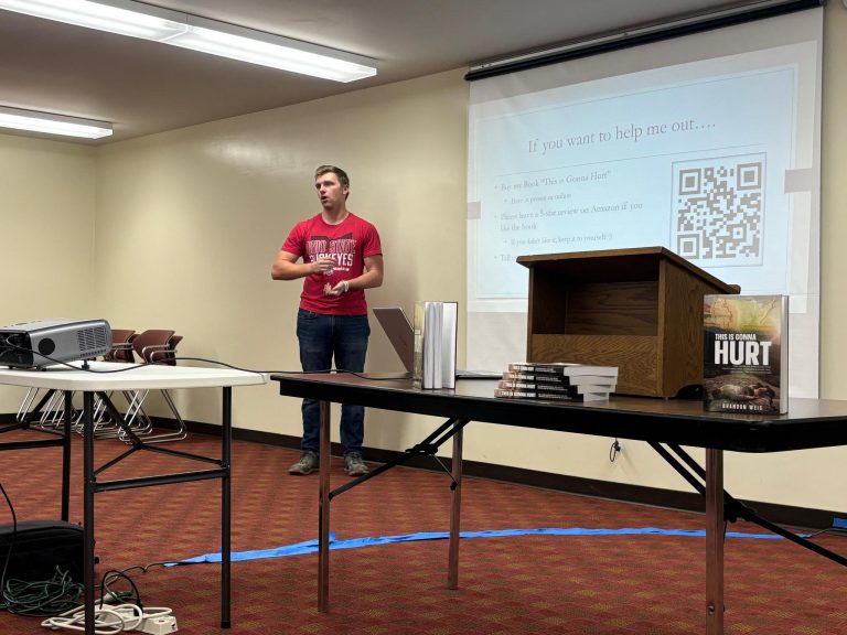 The Monroe County Commissioners met with Jed Hooper during their regular meeting to promote work zone safety. Pictured are, from left to right: Commissioner Bill Bolon, Hooper, and Commissioners Diane Burkhart and Mick Schumacher.